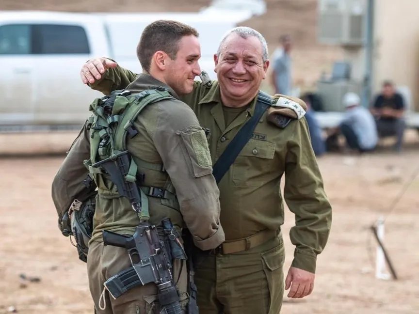 صورة نشرها حساب الرئيس الإسرائيلي يتسحاق هرتسوغ على 'X' لوزير حكومة الحرب جادي أيزنكوت مع نجله الذي سقط في المواجهات بشمال غزة. 7 ديسمبر 2023 - twitter/Isaac_Herzog