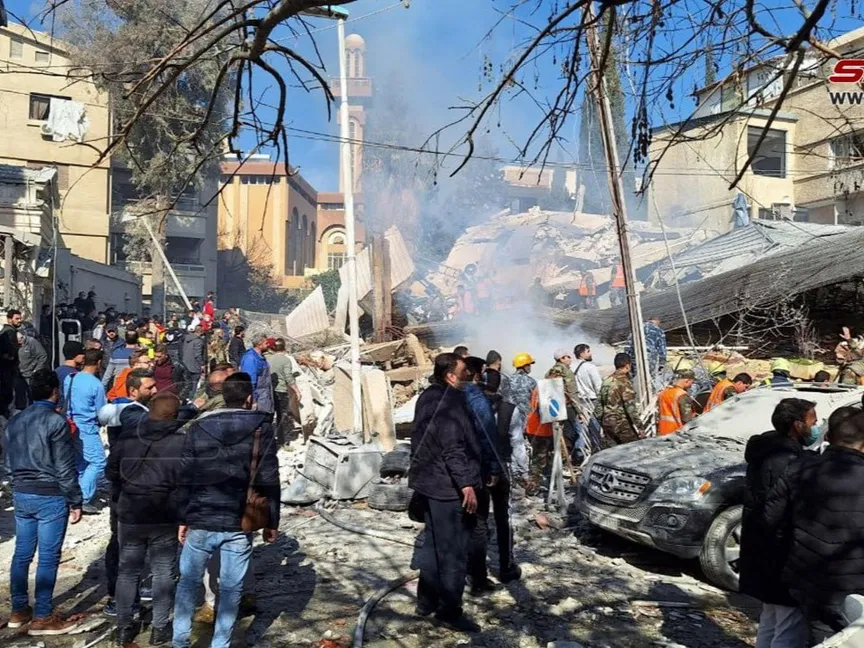 واتهم الحرس الثوري الإيراني في بيان، حسبما نقلت وكالات الأنباء الإيرانية الرسمية، إسرائيل بشن "عدوان" على دمشق، مشيراً إلى أن الهجوم الذي تم بواسطة "مقاتلات" إسرائيلية أودى بحياة "4 مستشارين عسكريين من إيران" و"عدد من القوات السورية"، ليضيف في وقت لاحق أن عضواً خامساً توفي متأثراً بجراحه. ولم يصدر أي تعليق بعد من إسرائيل.