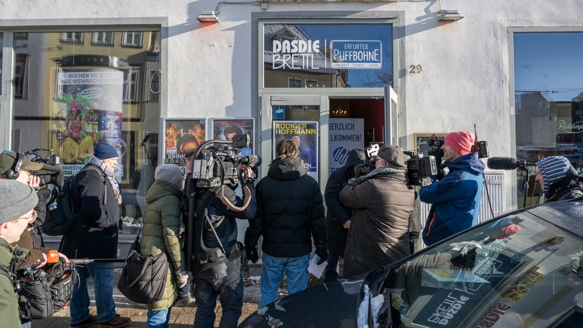 صحافيون أمام مقر مجموعة "فيرت يونيون" في إرفورت بألمانيا. 20 يناير 2024 - AFP