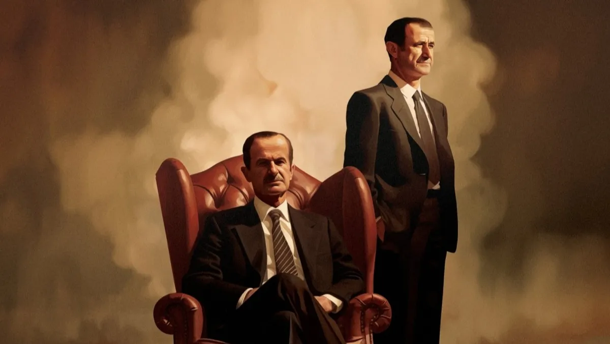 صورة تعبيرية تظهر الرئيس السوري السابق حافظ الأسد (جالساً على كرسي) وشقيقه الأصغر "رفعت" واقفاً. - المجلة