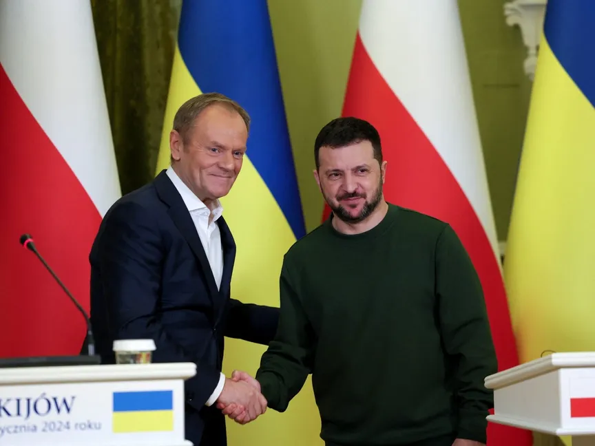 تعهد رئيس الوزراء البولندي دونالد توسك والرئيس الأوكراني فولوديمير زيلينسكي، الاثنين، بحل الخلافات السياسية التي تعرقل "تحالفهما المهم"، في وقت الحرب وتعزيز التعاون الدفاعي بينهما، مع اقتراب الغزو الروسي لأوكرانيا من دخول عامه الثالث.