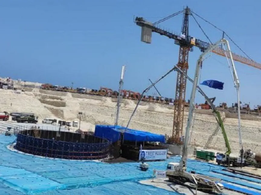 صب الخرسانة الأولى بالوحدة الأولى من مشروع المحطة النووية بمنطقة الضبعة شمال غرب مصر. 20 يوليو 2022 - nppa.gov.eg/ElDabaa