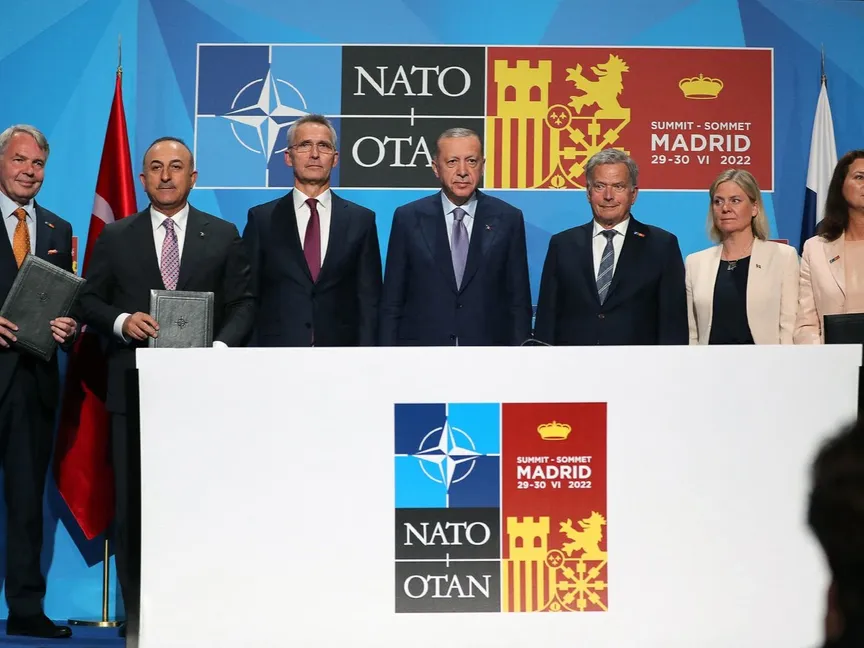 واعترض الرئيس التركي رجب طيب أردوغان في مايو 2022 على طلبي السويد وفنلندا الانضمام إلى الحلف العسكري.