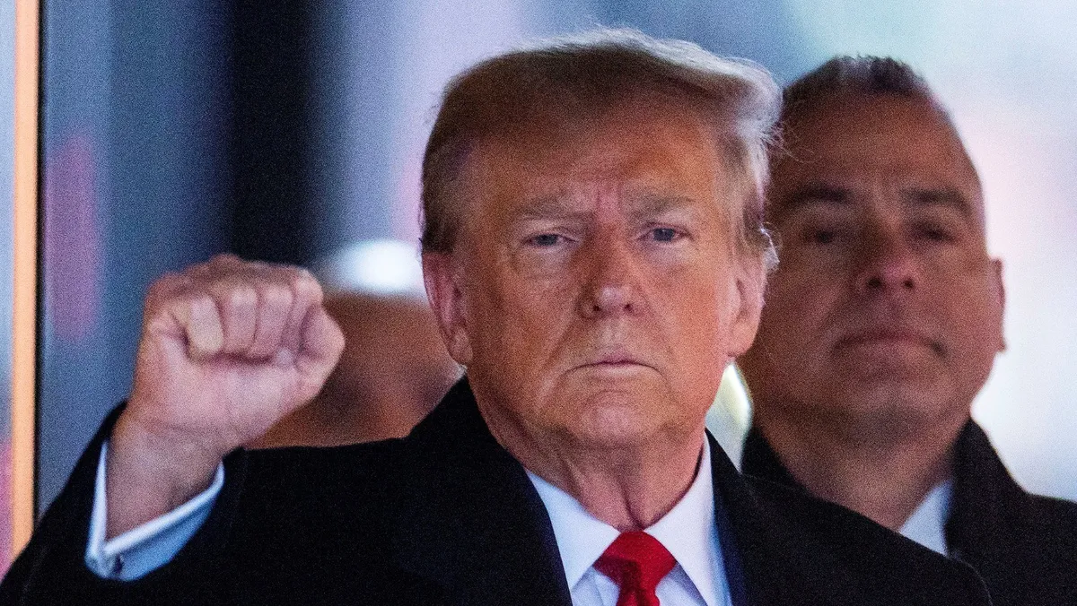 الرئيس الأميركي السابق دونالد ترمب يشير إلى مؤيديه في مدينة نيويورك. 26 يناير 2024 - REUTERS