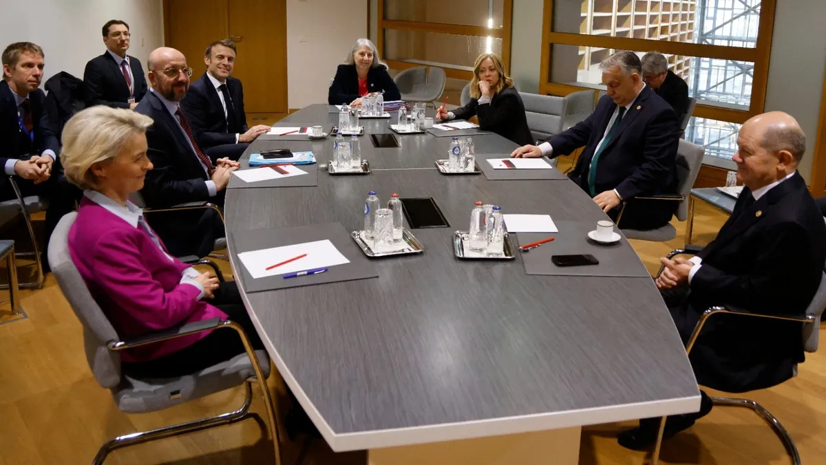 توصلت الدول الـ27 الأعضاء في الاتحاد الأوروبي، الخميس، إلى اتفاق حول مساعدة بقيمة 50 مليار يورو لمدة 4 سنوات لأوكرانيا، كانت مجمدة سابقاً بسبب رفض رئيس الوزراء المجري فيكتور أوربان.
