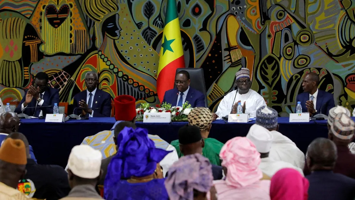 رئيس السنغال ماكي سال خلال إحدى جلسات الحوار الوطني قبل الانتخابات الرئاسية في داكار. 31 مايو 2023 - REUTERS