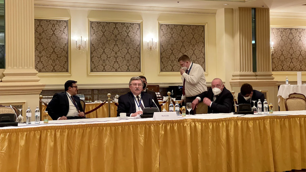 مندوب روسيا الدائم لدى المنظمات الدولية، ميخائيل أوليانوف خلال مشاركته في محادثات فيينا - https://twitter.com/Amb_Ulyanov