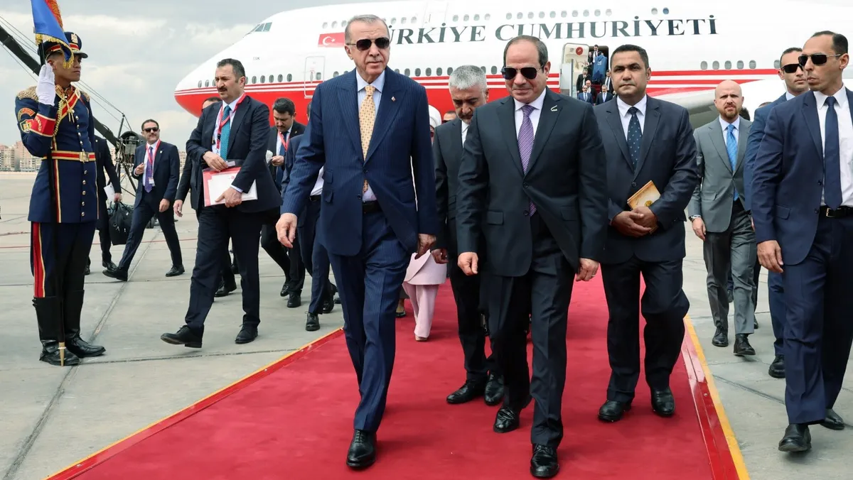 بدأ الرئيس التركي رجب طيب أردوغان، الأربعاء، زيارة رسمية لمصر، يبحث خلالها مع نظيره عبد الفتاح السيسي، القضايا العالمية والإقليمية الراهنة، خاصة الحرب الإسرائيلية على غزة، إضافة إلى الخطوات التي يمكن اتخاذها لتحسين العلاقات الثنائية، في إطار استمرار التقارب بين البلدين بعد قطيعة دامت نحو 10 أعوام.