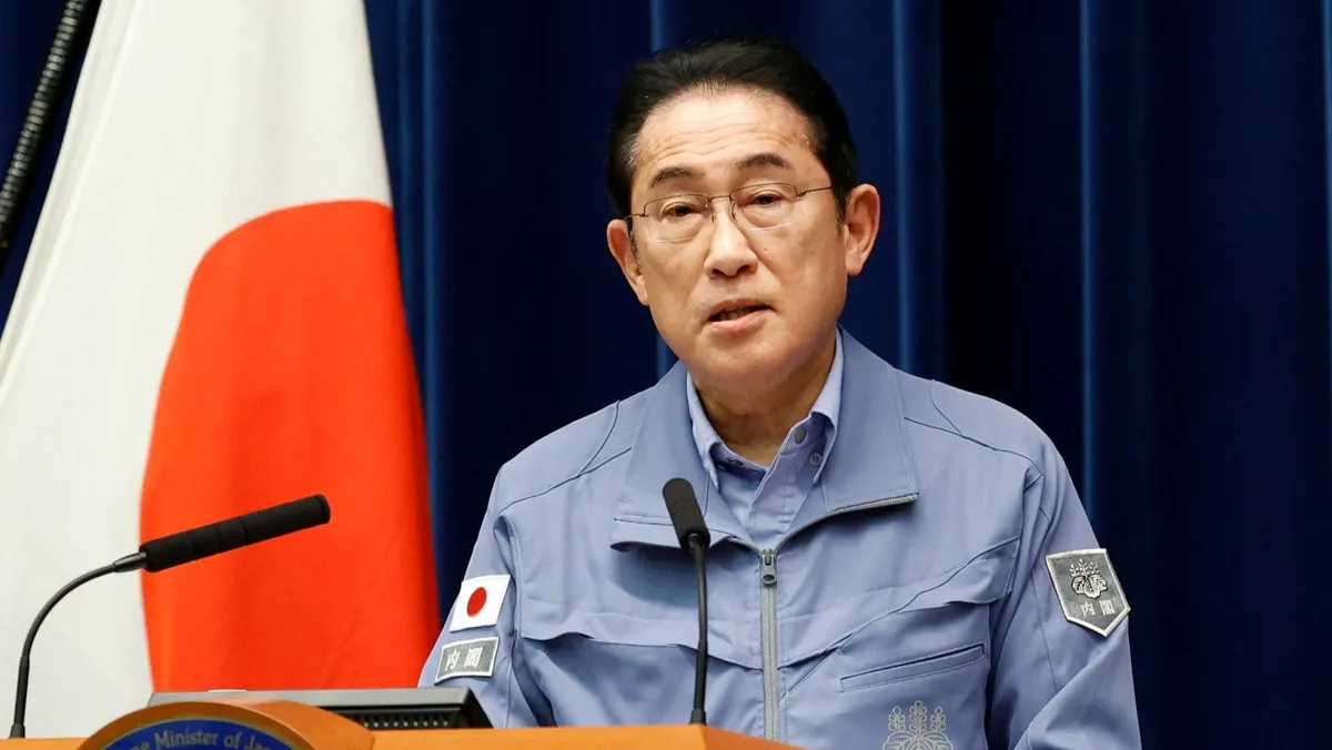 رئيس الوزراء الياباني فوميو كيشيدا يتحدث خلال مؤتمر صحافي في مكتبه بالعاصمة طوكيو. 4 يناير 2024 - REUTERS