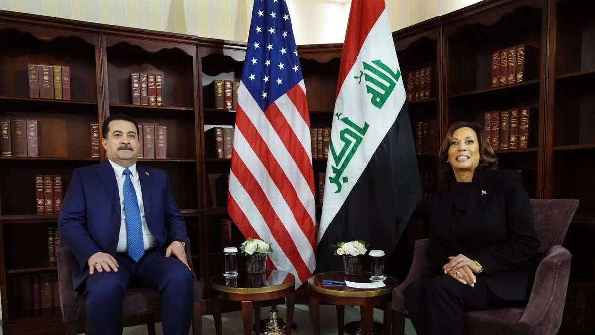 وذكر البيت الأبيض في بيان أن هاريس أكدت للسوداني التزام الولايات المتحدة بدعم بلاده في تحقيق مستقبل آمن ومستقر لشعبه، لكنها شددت على أن سلامة الأميركيين في العراق أولوية قصوى لواشنطن التي "ستتصرف دفاعاً عن النفس عند الضرورة".