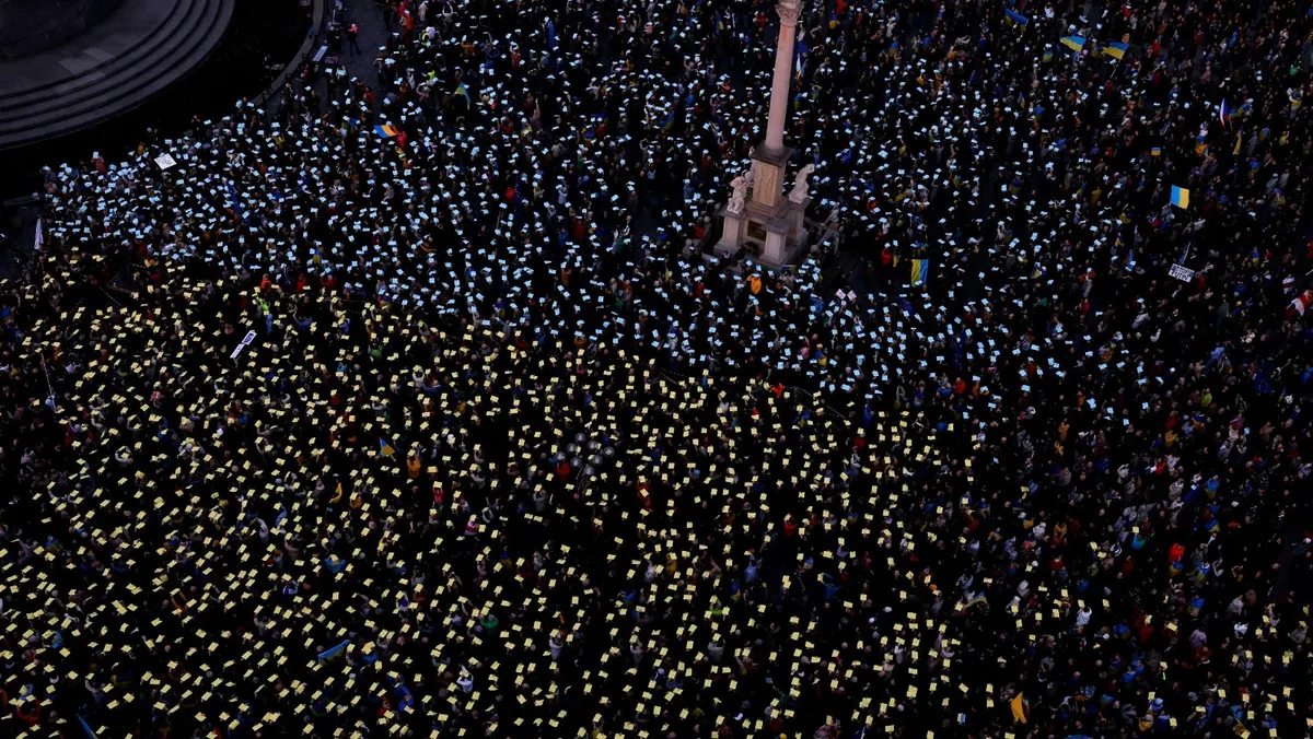 تظاهر آلاف الأشخاص في القارة الأوروبية، السبت، تعبيراً عن دعمهم لأوكرانيا، وذلك في الذكرى الثانية لبدء الغزو الروسي للبلاد، في حين ترى نسبة ضئيلة من الرأي العام أن انتصار كييف واقعي.