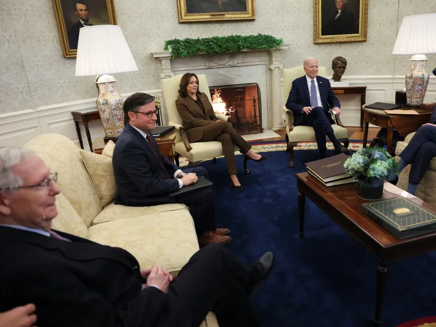 والتقى بايدن رئيس مجلس النواب الجمهوري مايك جونسون، ونظيره الديمقراطي حكيم جيفريز، وزعيم الأغلبية الديمقراطية في مجلس الشيوخ تشاك شومر، وزعيم المعارضة ميتش ماكونيل.