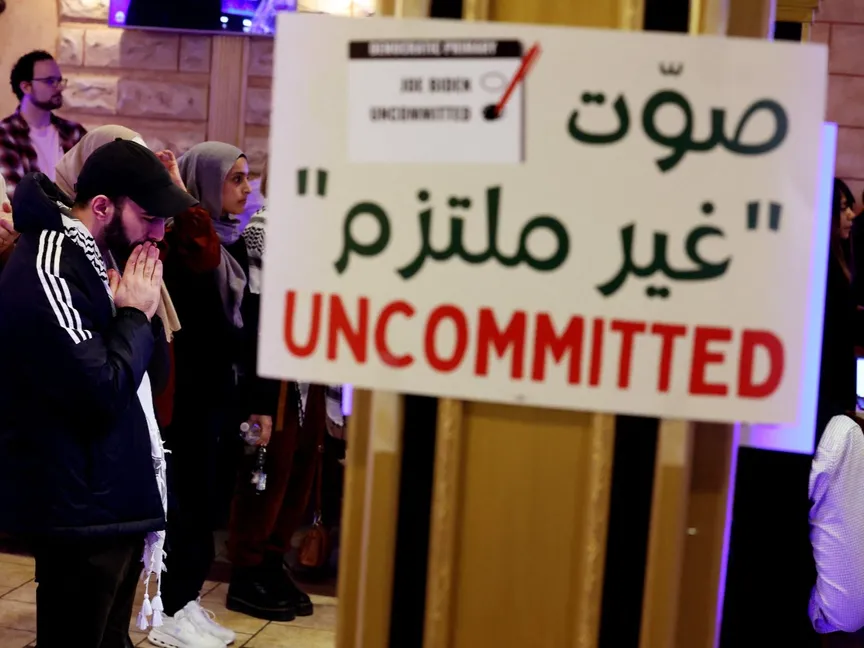ولا يواجه بايدن (81 عاماً) أي معارضة جدية لترشحه لولاية ثانية في البيت الأبيض، ولكن مع ارتفاع عدد الضحايا المدنيين في حرب إسرائيل على قطاع غزة، تراجع تأييده بين المسلمين والعرب الأميركيين، وهم كتلة حسمت فوزه في ميشيجان بفارق ضئيل عام 2020 على ترمب، إذ فاز بفارق 3% فقط.