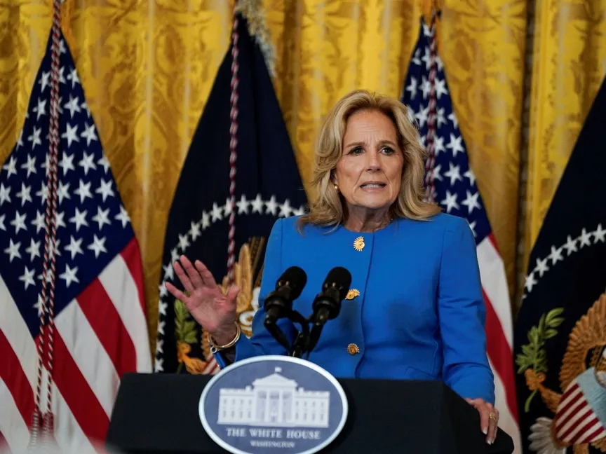وتحدثت السيدة الأولى جيل بايدن لمدة 14 دقيقة فقط في المحطة الثانية من جولتها "نساء من أجل بايدن-هاريس" في جميع أنحاء البلاد، وكان من المفترض أن تُركز تصريحاتها على قضايا المرأة، بما في ذلك حقوق الإجهاض، التي يمكن التصويت عليها في ولاية أريزونا في نوفمبر.