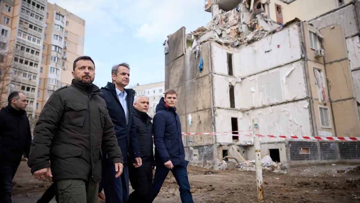 وقال رئيس الوزراء اليوناني، إن زيلينسكي اصطحبه في جولة داخل المدينة، التي تعرضت لأضرار جسيمة جراء أشهر من الضربات الروسية، قبل أن يسمعوا صافرات الإنذار للغارات الجوية.