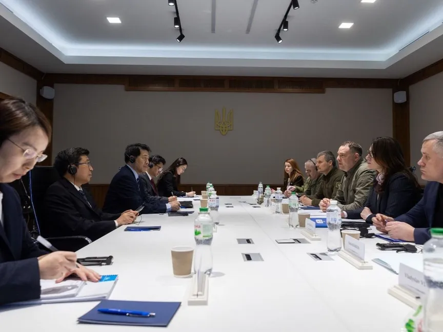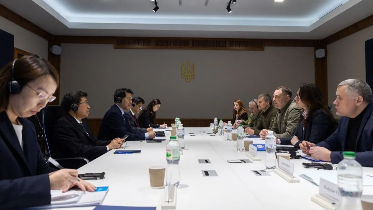 الممثل الخاص للحكومة الصينية للشؤون الأوراسية لي هوي والوفد المرافق خلال اجتماع مع مدير مكتب الرئيس الأوكراني فولوديمير زيلينسكي في العاصمة كييف. 07 مارس 2024 - @AndriyYermak