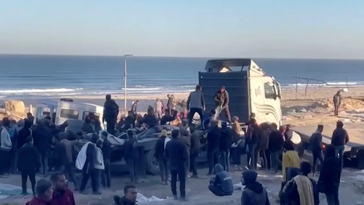 وأوضح الجيش الإسرائيلي، أن "نحو 12 ألف فلسطيني تجمّعوا حول شاحنات المساعدات وبدأوا أخذ الإمدادات"، مضيفاً: "خلال عملية النهب، وقعت حوادث تلحق ضرراً بالغاً بالمدنيين بسبب التدافع ودهس الشاحنات للناس"، على حد زعمه.