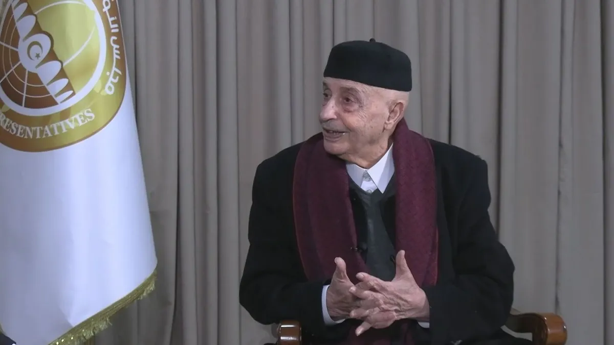 رئيس مجلس النواب الليبي عقيلة صالح خلال مقابلة مع "الشرق" بمدينة القبة في ليبيا. 18 فبراير 2023 - "الشرق"