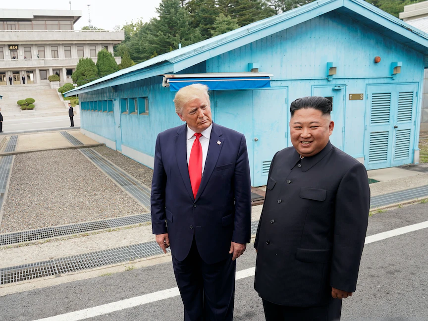 والتقى في يونيو 2018 للمرة الأولى كيم جونغ أون في سنغافورة، في أول قمة بين البلدين اللذين ما زالا تقنياً في حالة حرب. وعُقد اجتماعان آخران بين ترمب وكيم بعد ذلك.