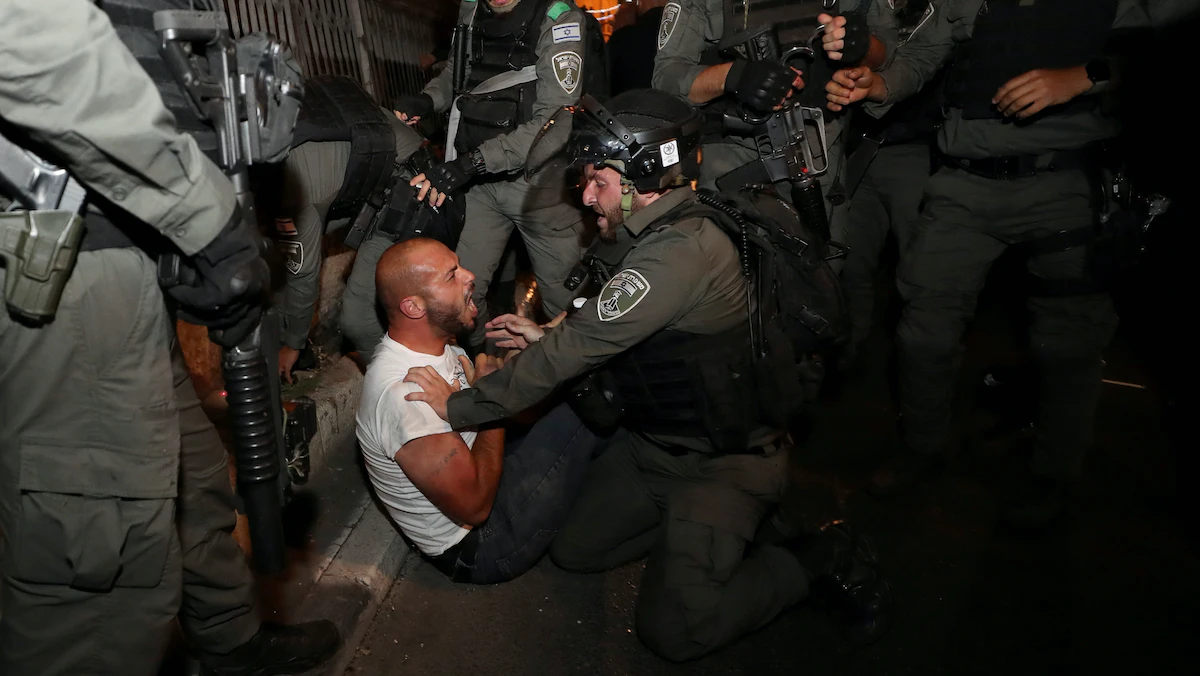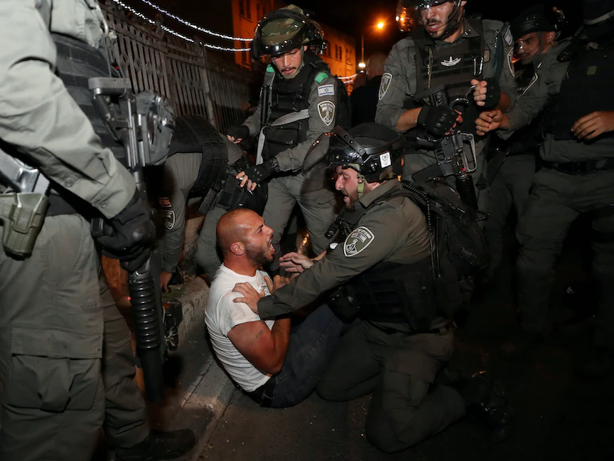 اعتقال متظاهر فلسطيني خلال مواجهات مع الشرطة الإسرائيلية في القدس - 23 أبريل 2021 - REUTERS
