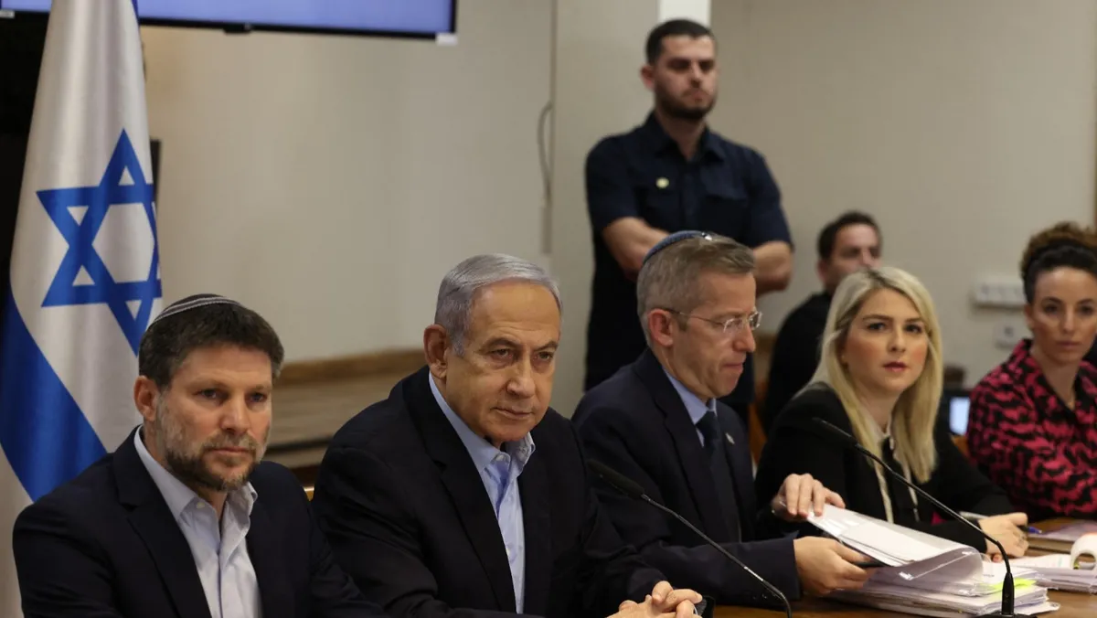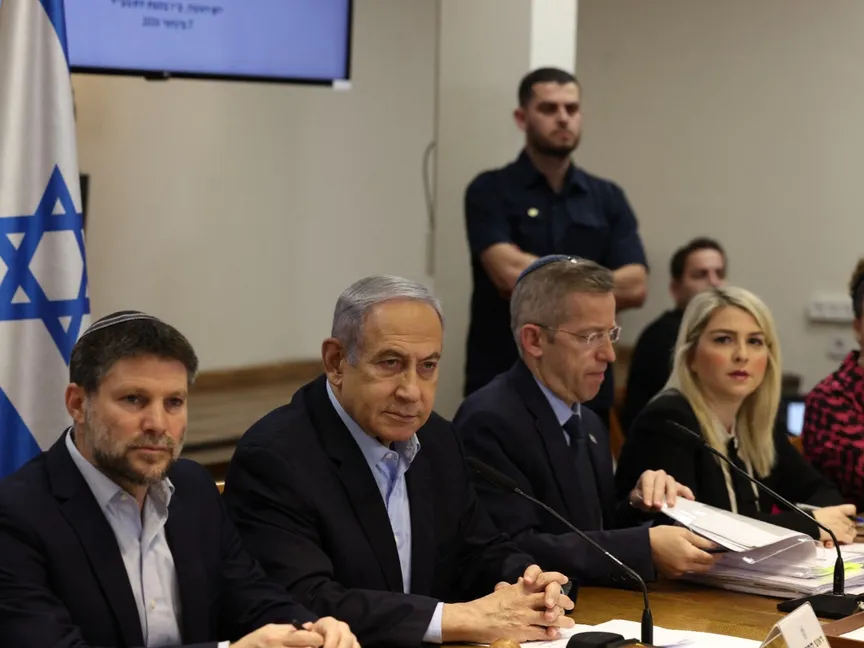 رئيس الوزراء الإسرائيلي بنيامين نتنياهو يترأس الاجتماع الأسبوعي لمجلس الوزراء في وزارة الدفاع في تل أبيب. 7 يناير 2024 - AFP