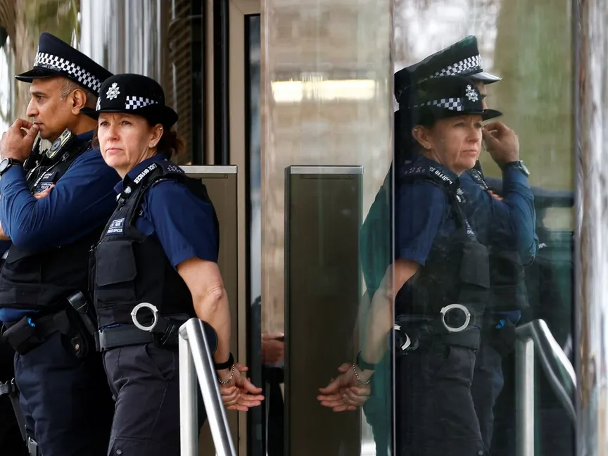 أفراد من شرطة العاصمة البريطانية لندن أمام مقر "سكوتلاند يارد". 21 مارس 2023 - REUTERS