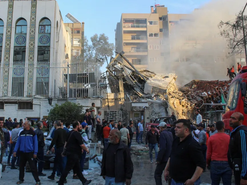 وقصفت طائرات حربية يشتبه بأنها إسرائيلية، السفارة الإيرانية في حي المزة بدمشق، الاثنين، في تصعيد للحرب التي تشنها إسرائيل على وكلاء طهران في المنطقة، إذ شوهد عمال طوارئ وهم يصعدون على أنقاض مبنى مدمر داخل المجمع الدبلوماسي بجوار مبنى السفارة الرئيسي، فيما كانت سيارات الطوارئ متوقفة في الخارج، وعلم إيران معلق على عمود أمام الأنقاض.