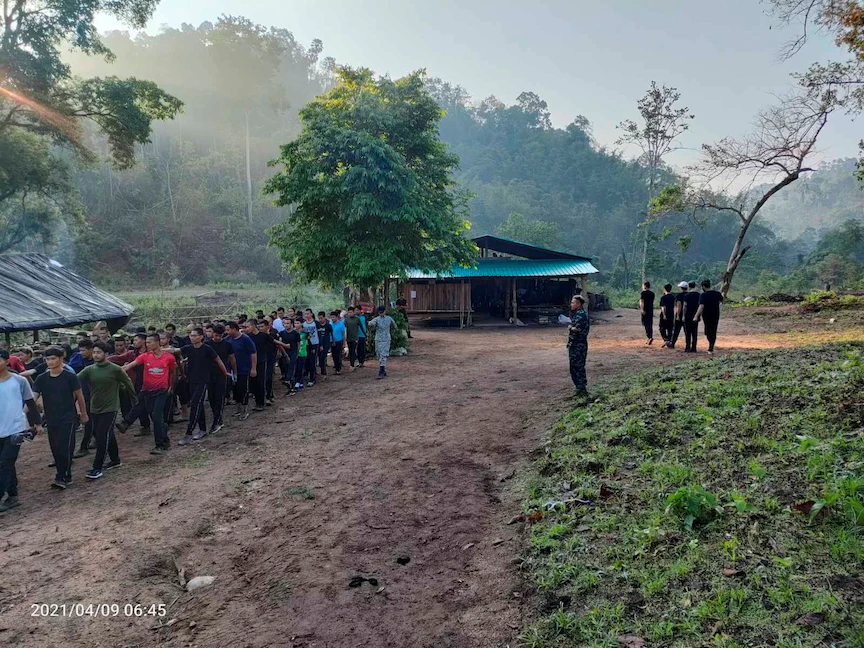 متظاهرون ينضمون إلى تدريب بقيادة اتحاد كارين الوطني (KNU). - via REUTERS