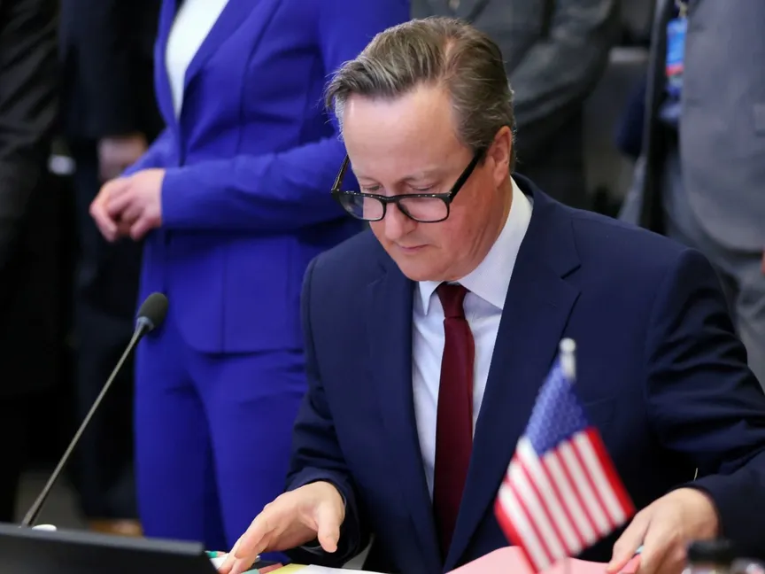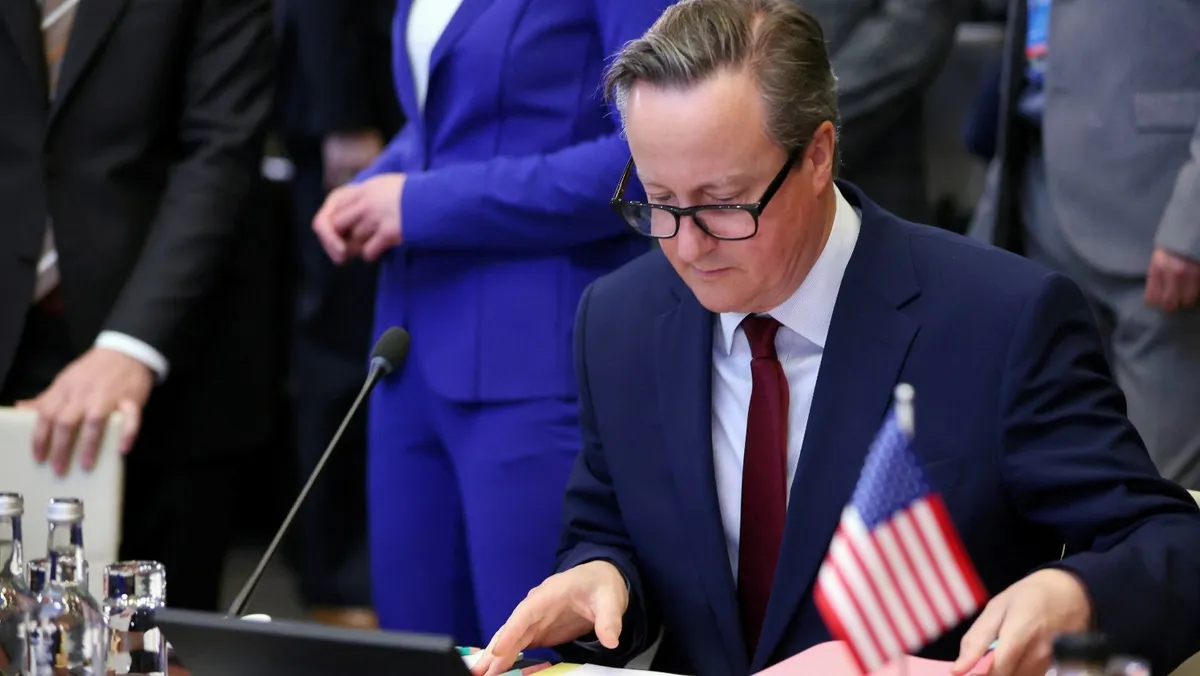 وزير الخارجية البريطاني ديفيد كاميرون خلال اجتماعات لحلف شمال الأطلسي "الناتو" في بروكسل. 04 أبريل 2024 - Reuters