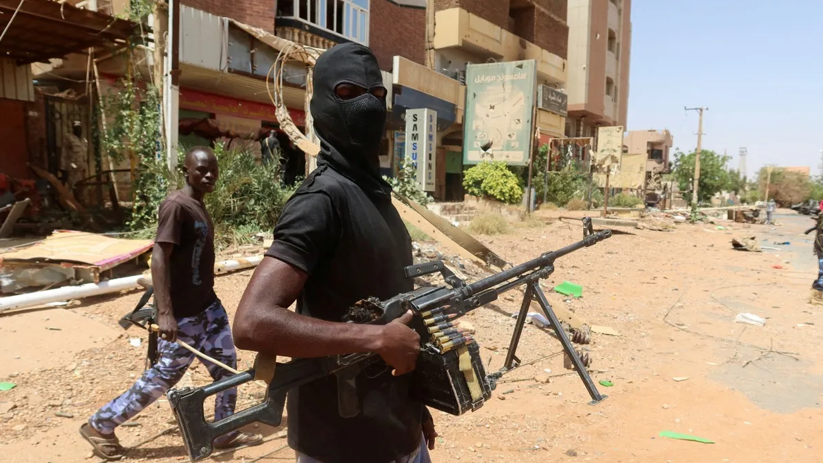 مسلحان في أحد شوارع أم درمان بالسودان. 9 مارس 2024 - Reuters