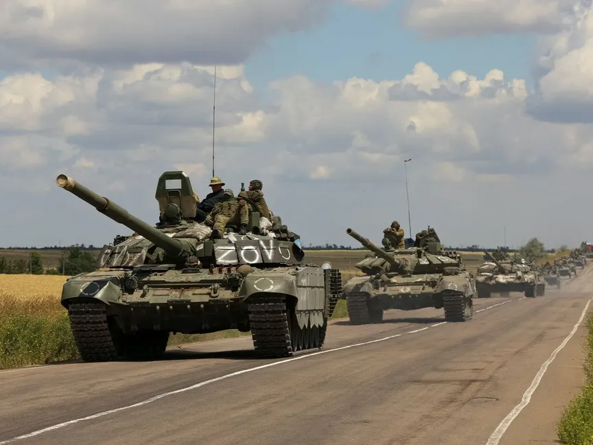 موكب دبابات للجيش الروسي يتقدم باتجاه منطقة زابوروجيا - REUTERS