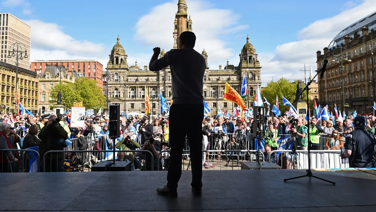 تظاهر نحو ألفي اسكتلندي من دعاة الاستقلال، السبت، في مدينة جلاسكو لدعم حركتهم المتعثرة التي تطالب بالحكم الذاتي، والانفصال عن المملكة المتحدة، وذلك قبل الانتخابات العامة المقررة في وقت لاحق هذا العام.