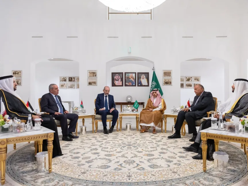 وترأس الاجتماع وزير الخارجية السعودي الأمير فيصل بن فرحان، في مقر وزارة الخارجية بالرياض، بحضور نظيريه المصري سامح شكري، والأردني أيمن الصفدي، وأمين سر اللجنة التنفيذية لمنظمة التحرير الفلسطينية حسين الشيخ، والمستشار الدبلوماسي لرئيس دولة الإمارات أنور محمد قرقاش، ووزير الدولة في وزارة الخارجية القطرية محمد بن عبدالعزيز الخليفي.