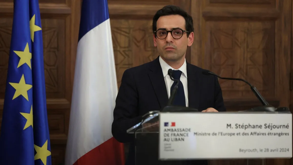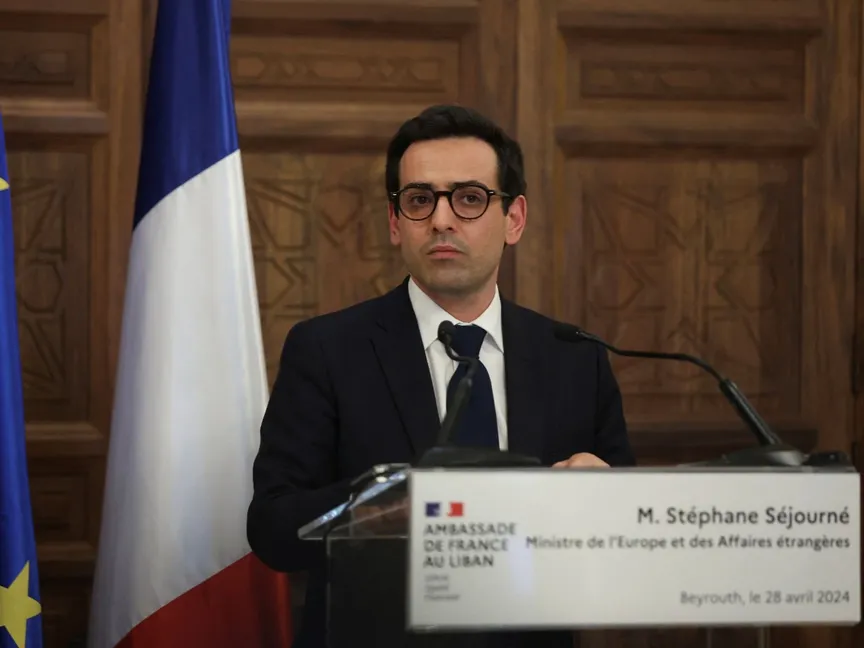 وزير الخارجية الفرنسي ستيفان سيجورنيه خلال مؤتمر صحافي في العاصمة اللبنانية بيروت- 28 أبريل 2024 - Reuters