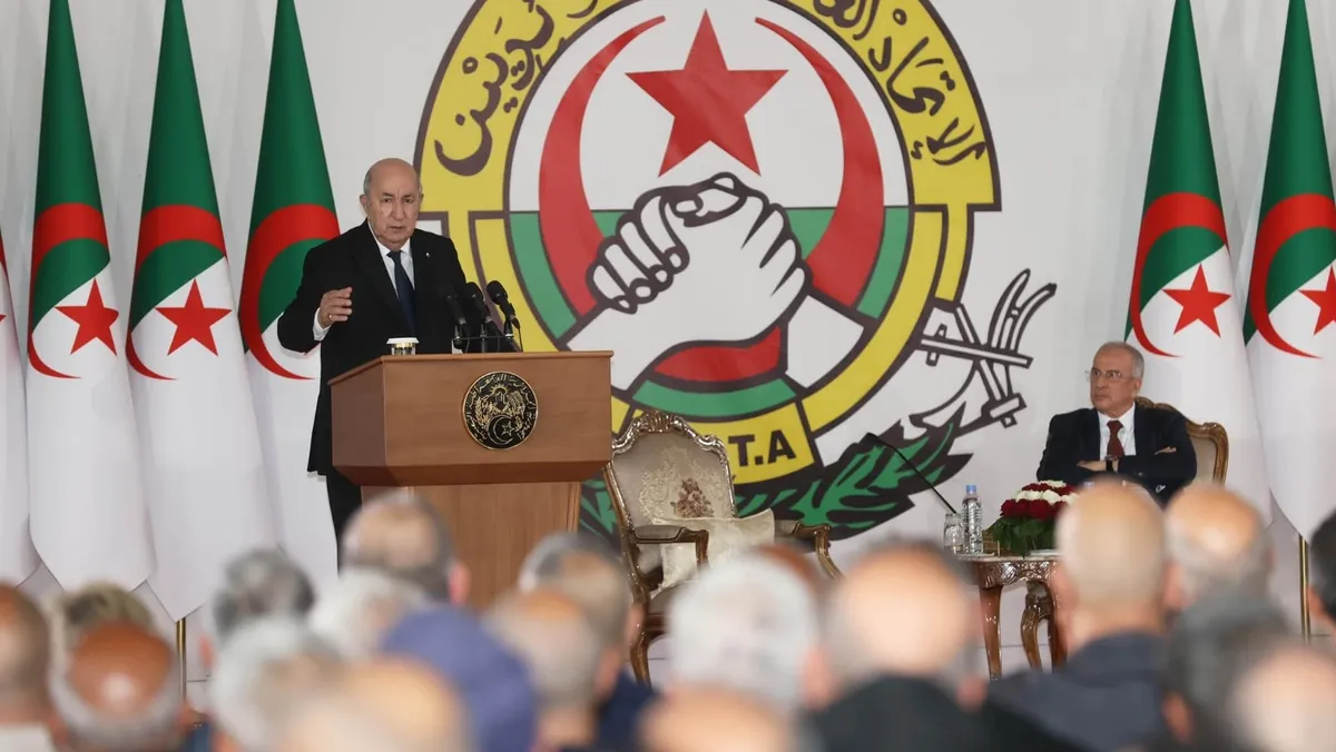 الرئيس الجزائري عبد المجيد تبون يتحدث أمام أعضاء الحكومة والمركزية النقابية بمناسبة عيد العمال. 1 مايو 2024 - AlgerianPresidency