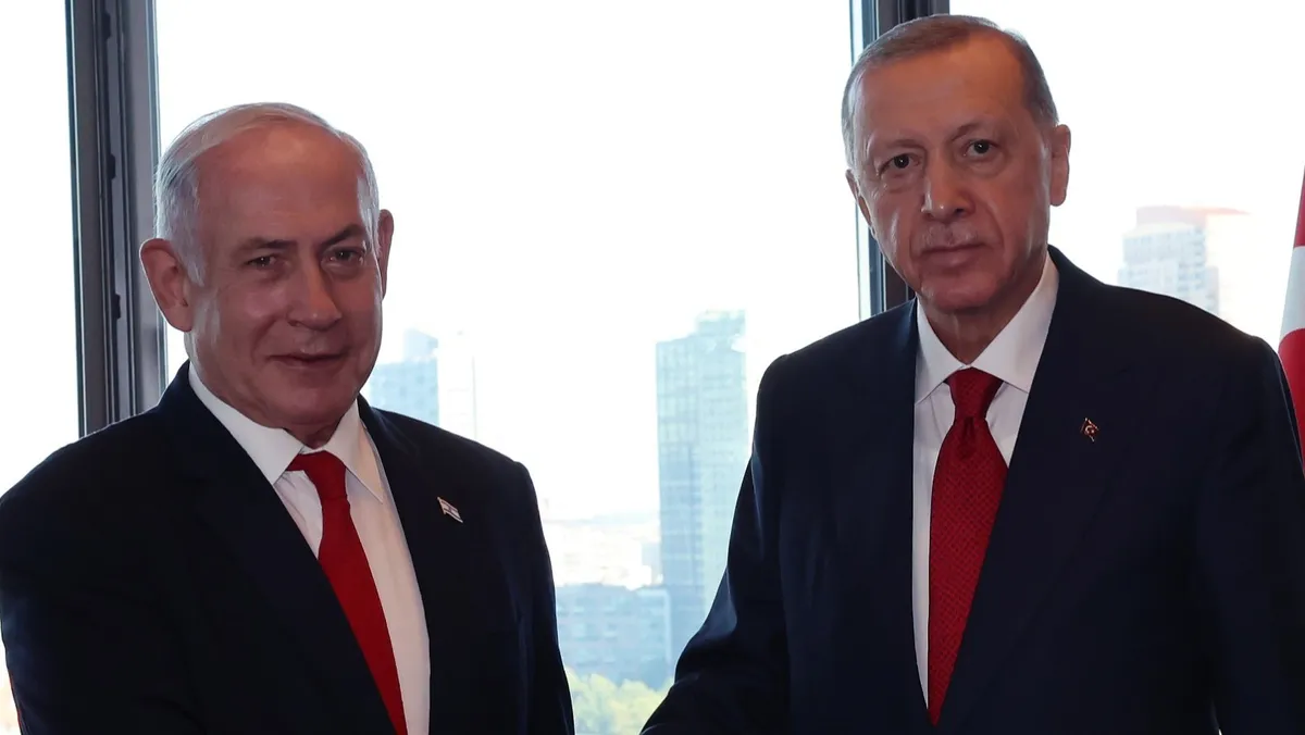 في مبنى "البيت التركي" وسط مدينة نيويورك، وفي أجواء تسودها "ابتسامات المجاملة" التقى الرئيس رجب طيب أردوغان، رئيس الوزراء الإسرائيلي بنيامين نتنياهو في 20 سبتمبر 2023 على هامش اجتماعات الدورة الـ 78 للجمعية العامة للأمم المتحدة.
