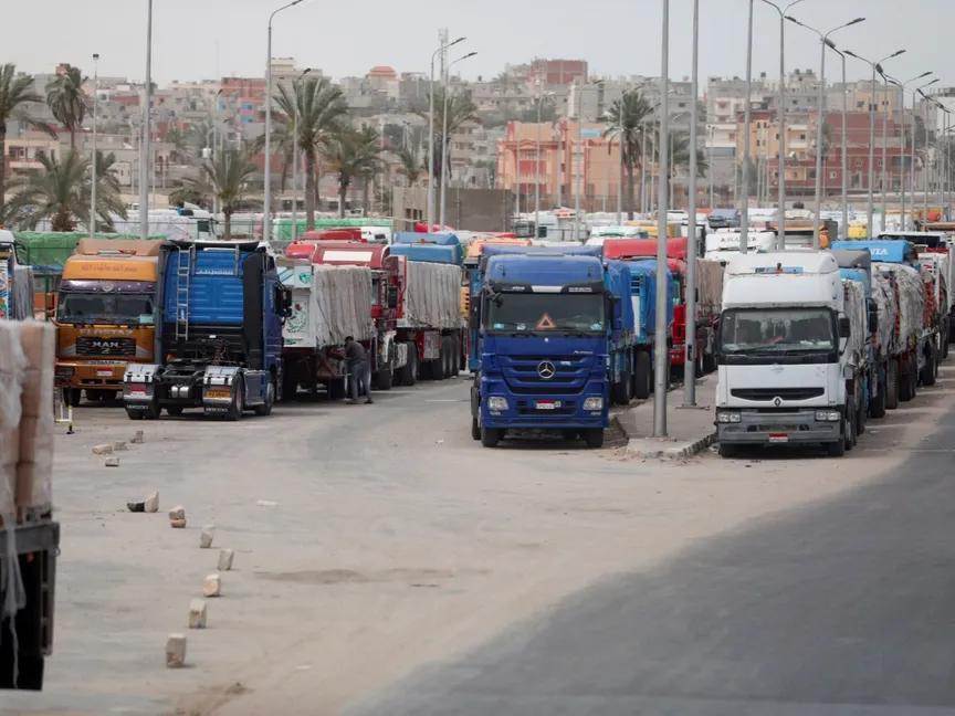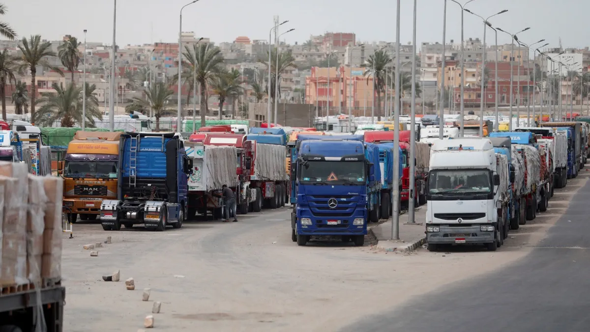 شاحنات عند معبر رفح الحدودي بين مصر وقطاع غزة وسط الصراع المستمر بين إسرائيل وحركة "حماس" - 25 أبريل 2024 - Reuters