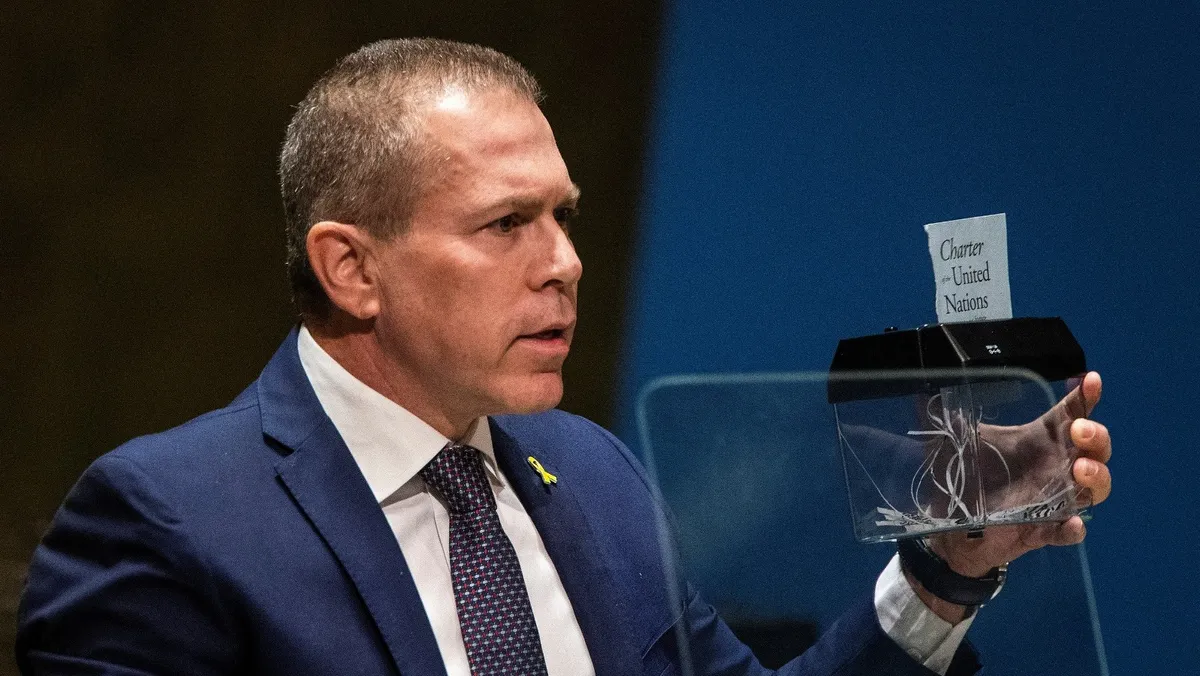 شنّ مندوب إسرائيل الدائم لدى الأمم المتحدة جلعاد إردان، الجمعة، هجوماً حاداً ضد أعضاء الجمعية العامة للأمم المتحدة، ومزق صفحات من ميثاق المنظمة، احتجاجاً على التصويت على مشروع قرار يدعو لتوسيع امتيازات فلسطين كـ"دولة مراقب".