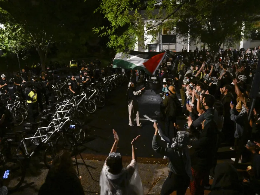 وخلال أسبوع واحد من مايو الجاري، أخْلت شرطة العاصمة الأميركية واشنطن، مخيماً مؤيداً للفلسطينيين في حرم جامعة جورج واشنطن، واعتقلت 30 طالباً. وفي شيكاغو فككت شرطة مخيماً مماثلاً كان قد أُقيم في الساحة الرئيسية للجامعة لمدة 8 أيام.