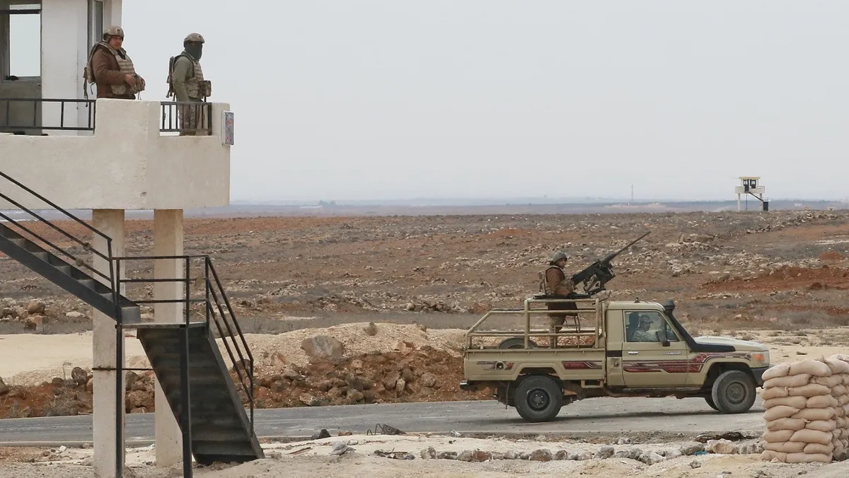 دورية تابعة للجيش الأردني في نقطة حراسة بالقرب من الحدود مع سوريا. 17 فبراير 2022 - AFP