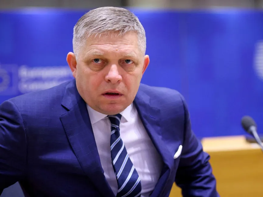 رئيس وزراء سلوفاكيا روبرت فيتسو يحضر قمة قادة الاتحاد الأوروبي في بروكسل. 22 مارس 2024 - REUTERS