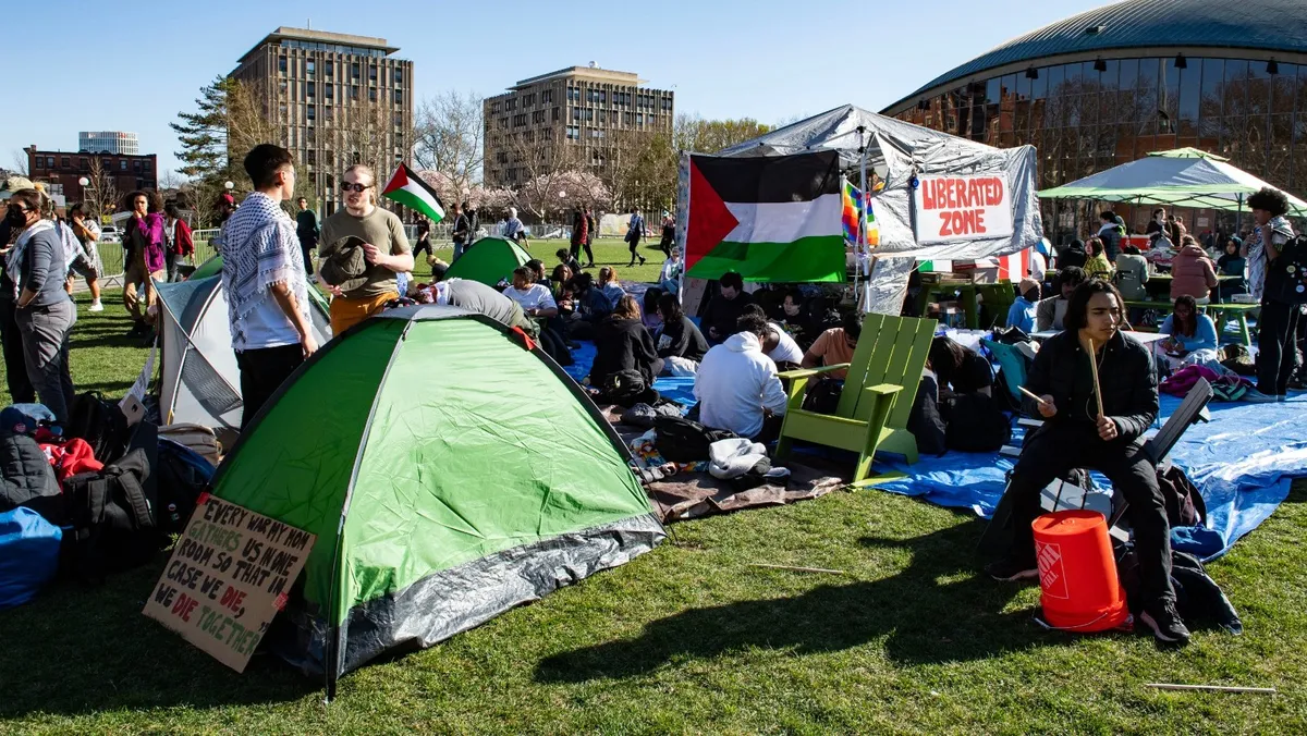 احتجاجات لطلاب من جامعة هارفارد ومعهد ماساتشوستس دعماً للفلسطينيين في غزة. 22 أبريل 2024 - AFP