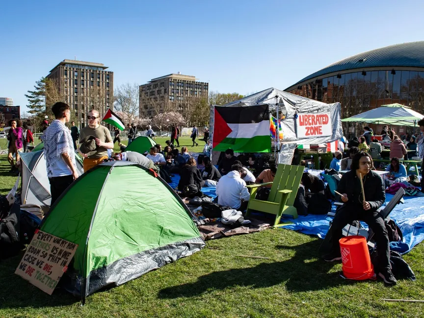 وفي 18 أبريل، بعد يوم من إقامة المحتجين مخيمهم تضامناً مع غزة، أرسل عمدة نيويورك قوات الشرطة إلى الحرم الجامعي لجامعة كولومبيا لتفريق المحتجين المؤيدين لفلسطين بناء على طلب الجامعة، ما أثار العديد من الانتقادات بحقه وبحق رئيسة الجامعة.