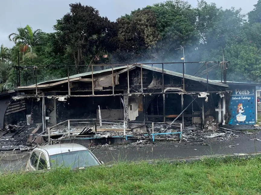 مبنى متضرر جراء أعمال شغب احتجاجاً على خطط السماح لمزيد من الأشخاص بالمشاركة في الانتخابات المحلية في الأراضي الخاضعة للحكم الفرنسي، والتي يرفضها المتظاهرون من السكان الأصليين من الكاناك، في نوميا، كاليدونيا الجديدة. 15 مايو 2024 - Reuters