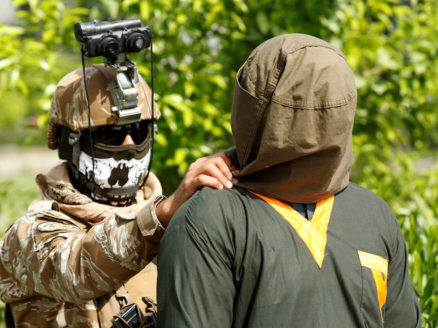 جندي تابع للقوات الأفغانية يرافق موقوفاً من حركة طالبان - REUTERS