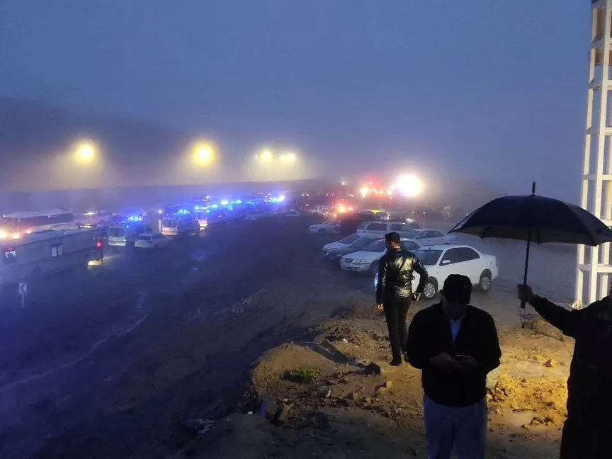 وقال الهلال الأحمر الإيراني في بيان، إنه يوجد على الأرض حالياً 65 فريق إنقاذ، مشيرةً إلى أنه نظراً لحساسية الوضع، تم إرسال الكلاب الكاشفة إلى جانب معدات متطورة ومتخصصة من العاصمة طهران والمحافظات المجاورة إلى منطقة الحادث.
