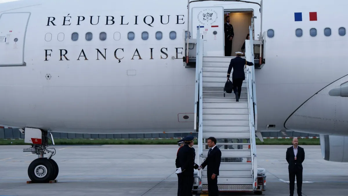 وقالت الناطقة باسم الحكومة الفرنسية بريسكا تيفنو، وفق بيان القصر الرئاسي الفرنسي، إن طائرة ماكرون أقلعت مساء الثلاثاء، بهدف تشكيل "بعثة" من دون أن تحدد تشكيلتها أو أهدافها.