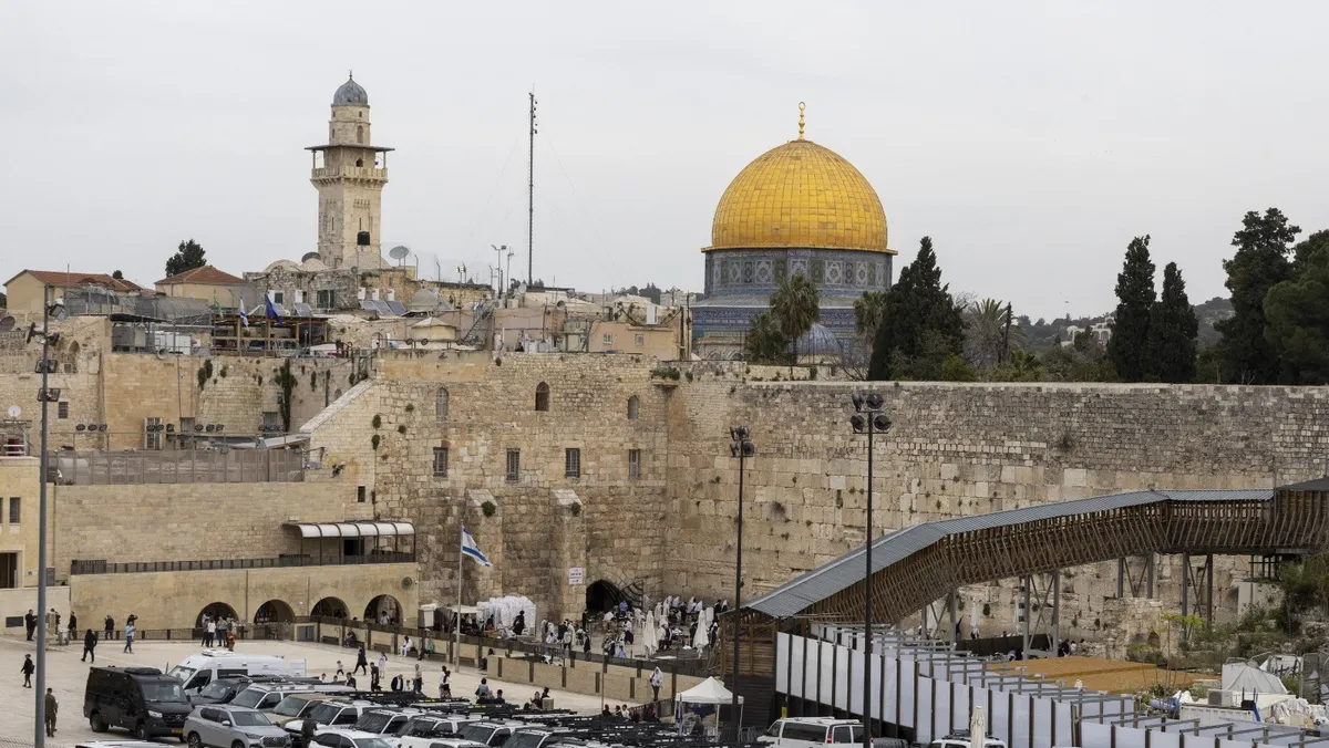 صورة تظهر حائط البراق والمسجد الأقصى خلال زيارة بعثة دبلوماسية إلى القدس المحتلة. 29 مارس 2024 - AFP