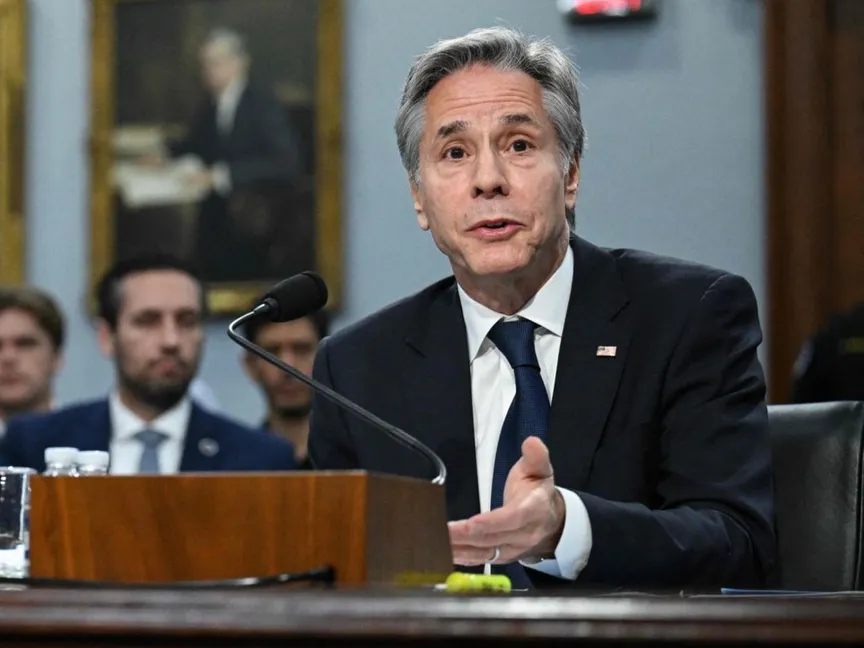 وزير الخارجية الأميركي أنتوني بلينكن يتحدث خلال جلسة أمام لجنة بمجلس النواب. 22 مايو 2024 - AFP