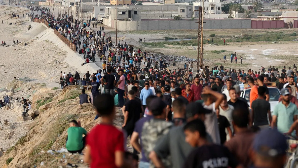 فلسطينيون يتجمعون على أمل الحصول على المساعدات وسط قطاع غزة. 19 مايو 2024 - REUTERS